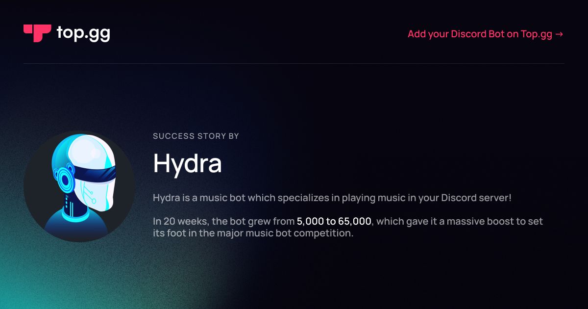 Some good examples of this are Hydra, Ticket Tool, and PixxieBot. They’ve each found their way in the vast land of Discord bots by respectively focusing on music, ticketing, and social interaction.