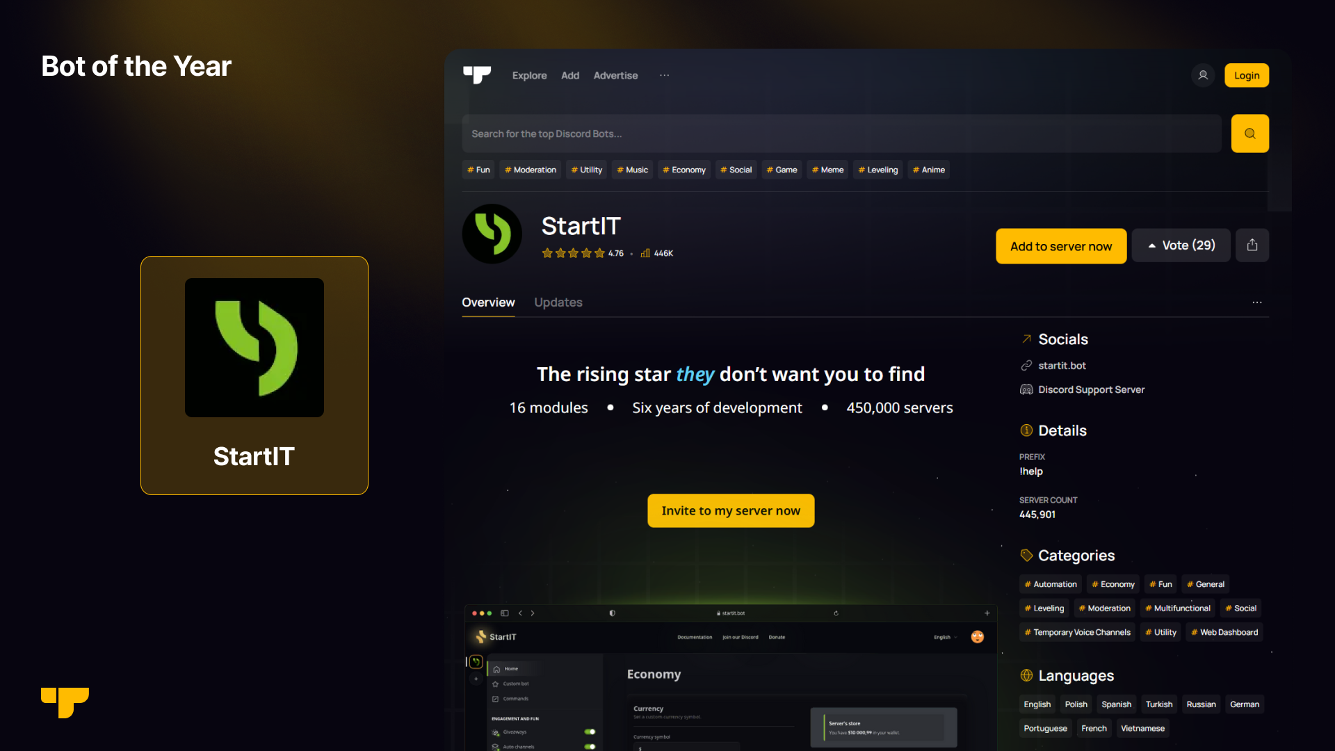 Over the past few months, the Top.gg community came together to celebrate the best creators and experiences on our platform. From October to December, thousands of you cast your votes across ten categories, championing the best bots and communities that made your year unforgettable. Now the results are in!